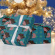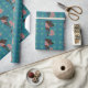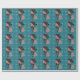 Retro cartoon style original illustration of cute happy dog wearing a garland of roses with geometric patterned background. Perfect wrapping paper for dog and animal lovers for any occasion.