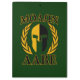 A bold Spartan warrior helmet Molon Labe laurels mask expression on a vibrant forest green graphic accent print decor for a fine custom gift idea. Come and get them!