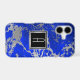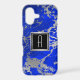 This unique phone case features your monogram in silver on a square black banner with a double silver frame. The banner is placed on an interesting background that looks as if molten silver has been randomly poured upon a bright royal blue gradient background, forming an abstract pattern. Beautiful! *Please note - the metallic look is simulated, and the case does not contain metallic paint, but only the image.