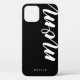Personalized black and white smart phone case for Mom in modern chic, minimalist typography style.