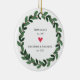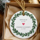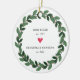Simply perfect Christmas ornament featuring a green berry wreath & heart with year est. as a Mom & Dad and year est. as a Grandma & Grandpa. A Wonder Christmas gift sure to be treasured for many years to come.