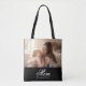 Mom Established Black Elegant Script Photo Tote Bag