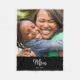 Mom Established black modern script photo fleece blanket featuring your custom picture and year. Soft, cozy, and meaningful—perfect for new moms or Mother’s Day. A warm, personalized keepsake she’ll cherish, blending comfort with a stylish, minimal design.