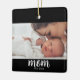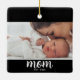 This is a lovely ornament, and great that you personalise the back with details of birthday, weight, etc.. My only tiny disappointment is the "My First" doesn't stand out very well on the background. More than happy with the printing of the photo and the writing on the back.