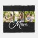 Mom Established Elegant Script Black 3 Photo Fleece Blanket