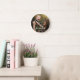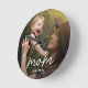 Mom Established Modern White Script Photo Round Clock