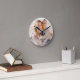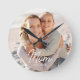 Mom Established Modern White Script Photo Round Clock