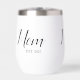 Celebrate motherhood in style with this modern Mom Established thermal wine tumbler, featuring black typography and the year she became a mom. Fully customizable, add a year for each child. This makes a thoughtful gift for new moms or a sentimental keepsake for yourself.