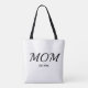 Black White Mom Established New Mom Gift - Minimal Elegant Black Script Mom Tote Bag - Add your custom "Est" established year date when your first child was born. Add additional years for each child.