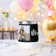Black White Mom Established Script Black Photo Design. Replace the photo with your own of your kids and change the years to the years you became a mom. Use the edit tool if you want a second photo added instead of the one photo two times.