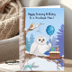 This charming January birthday card features a striking Snowy Owl holding a snowflake balloon beside a rich chocolate birthday cake, set within a cozy winter scene. In the background, a small Barn Owl looks on from the snowy landscape, adding a gentle touch of nature and seasonal charm. Perfect for a mom who appreciates wildlife, peaceful winter moments, and unique artwork, this nature-inspired birthday card brings warmth, character, and winter wonder to her special day.