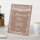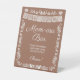 Set up the cutest drink station at your fiesta-themed baby shower with this fun "Mom-osa Bar" pedestal sign! Featuring elegant white script, a papel picado banner, delicate folk art floral border, and playful instructions — "Pour the bubble, add some juice, top with fruit, Cheers!" — all on a warm terracotta brown background. A must-have for any mimosa bar setup!