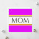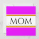 This fun classy design features modern black font inside a wide white centre stripe highlighted with black, yellow, and orange pinstripes against a vibrant tropical pink background with MOM written across the design. The text can be personalised.