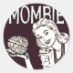 Classic 50s mum wearing an apron and happily serving up... Brains? Well that gives new meaning to being a "June Cleaver" mum! Text: MOMBIE Image: Retro zombie housewife serving up brains for dinner.