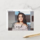 Stylish, elegant graduation thank you cards featuring a black modern calligraphy script font overlaying the graduate's favourite senior photo. Personalise the modern graduation thank you cards by adding the graduate's name, return address, and your custom message.