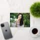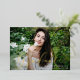 Elegant graduation announcement featuring the graduate's horizontal photo with "Graduate" displayed in a gold foil script overlay. Personalize the gold foil graduation announcement with the graduate's name, school, and graduation year. The back of the announcement features a solid black background with space for additional photos and text.