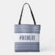 Tote bag in blue and white. Custom quote art hashtag design "#momlife". The perfect gift for your mum on her birthday or mother's day.