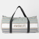 Duffle bag in turqouise blue, beige and white. Custom quote hashtag design "#momlife" in beach colours. The perfect gift for your mum on her birthday or mother's day.