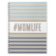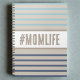 Notebook in turqouise blue, beige and white. Custom quote art hashtag design "#momlife" in beach colours. The perfect gift for your mum on her birthday or mother's day.