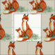 Fabric designed with a watercolor image of a mother and baby fox. The young fox is looking up at her mother with love and appreciation. Both sitting on some grass. Orange and tan colours.