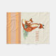 A blanket designed with a watercolor image of a mother and baby fox. The young fox is looking up at her mother with love and appreciation. Both sitting on some grass. Orange and tan colours.