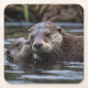 Mommy And Baby Otter Having A Cuddle In The River, Square Paper Coaster