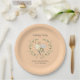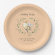 A Cute watercolor bee themed party napkin style for your baby shower, featuring a bee with a honey dipper, surrounded by a floral wreath, all in soft honey and blush tones on a peach background. The playful illustration sets the tone for a warm, whimsical bee baby shower that feels light, modern, and charming. Personalize with the mommy to bee’s name.