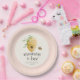 The rim of the plate is decorated with soft blush pink stripes that add a cheerful accent and coordinate beautifully with your party table. Perfect for a baby girls spring summer or anytime of year baby shower. This design combines modern sophistication with whimsical charm.