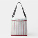 Our Preppy Atomic Age original pattern print has a retro feel in the cool mint and mauvy-pink tones of the mid-20th Century, accented with coordinating deep crimson stripes, polka dots, and golden dijon mid-century-chic "bursts". This crossbody bag is perfect for having your baby or preschooler's essentials at the ready when you're on the go. The front is customizable with your child or baby's (or grandchild's /niece's /nephew's) name, or other custom text. But don't forget you! (Your own monogram letter [the Mommy/Grandma/Aunt's, etc.'s] has its place inside the circle.)