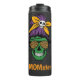 A stylish skull with a purple bun, leopard print sunglasses, and a skull-adorned bandana, perfect for Halloween enthusiasts with a flair for the dramatic.
