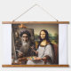 A Unique, playful twist on the famous painting, showing Mona Lisa holding a palette and brush, actively painting da Vinci's portrait on an easel..