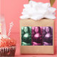 Da Vinci's masterpiece times three (x3), set off in colours of green, raspberry, and plum purple... with thin vertical streamers of animal print.