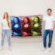 Da Vinci's masterpiece times three (x3), set off in the primary colours of red, yellow and blue... with thin vertical streamers of animal print.
