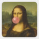 Mona Lisa Blowing Pink Bubble Gum Square Sticker