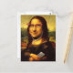 Funny caricature of Mona Lisa's smile, courtesy of psychoactive drugs, which she is holding in her hand. She's also sporting pink cat-eye glasses and listening to music with ear buds. By DonkeyHotey.