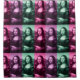 Da Vinci's masterpiece times three (x3), set off in colours of green, raspberry, and plum purple.