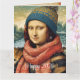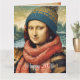 A playful folded greeting card featuring the Mona Lisa bundled up in a cozy beanie and scarf, smiling through a snowy December scene with a simple “Happy 2026” message on the outside. Inside, the design opens to a witty New Year greeting printed over a beautifully textured old-canvas look background—giving the card a humorous yet artful museum-vibe twist. Perfect for sending warm wishes with a dash of Renaissance parody and winter cheer.