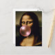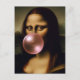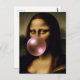 A funny representation of Mona Lisa blowing a pink bubble gum