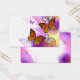 Orange, detailed monarch butterflies on light, purple, picturesque, painted background.