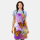 Orange, detailed monarch butterflies on light, purple, picturesque, painted background.
