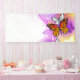 Orange, detailed monarch butterflies on light, purple, picturesque, painted background.