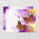 Orange, detailed monarch butterflies on light, purple, picturesque, painted background.