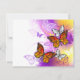 Orange, detailed monarch butterflies on light, purple, picturesque, painted background.