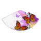 Orange, detailed monarch butterflies on light, purple, picturesque, painted background.