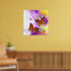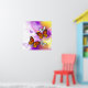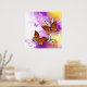 Orange, detailed monarch butterflies on light, purple, picturesque, painted background.