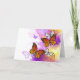 Orange, detailed monarch butterflies on light, purple, picturesque, painted background.