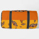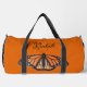 Girls duffle bag with monarch butterfly pattern and place for her name. Colours are orange, gold, and black. The name is in black script above a big butterfly image. Perfect for taking to a sleepover or visit with the grandparents. This bag also comes in a smaller size.