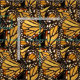 This animal fabric design features a repeating abstract pattern of a lovely Monarch Butterfly (Danaus plexippus) wing in colours of orange, yellow, gold, black, brown and white.