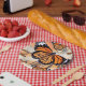 Paper party plates featuring a design of monarch butterflies created by the artist Alan Skyrme