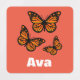 Monarch Butterfly Design - Personalise Name Small Square Orange Red Clothing Label (0.75" x 0.75")